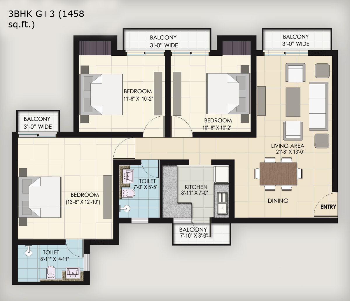 | Fixtures & Fittings | Granite/marble counter, white sanitary ware and contemporary chrome plated fittings |